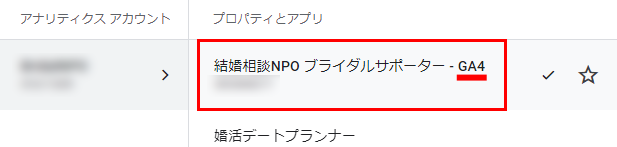 3.複数サイトを運用している場合はここから権限を付与するサイトのプロパティを選択してください。複数ある場合は末尾に「-GA4」と書かれているものを選択します。